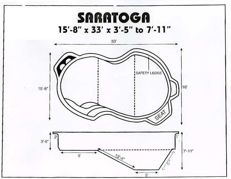 15'3" x 33' flat bottom 3'6" with hopper to 8' deep